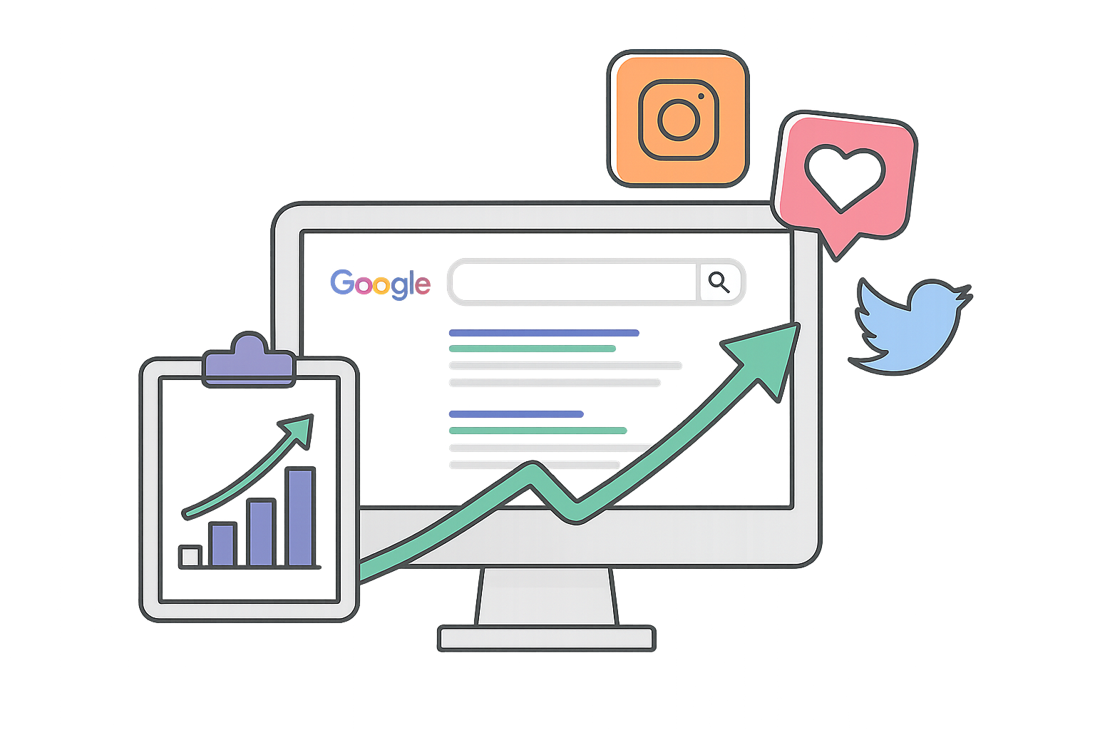 Posicionamos tu marca en Google y redes sociales con estrategias de SEO, campañas, contenido y análisis de rendimiento. Llegá a las personas correctas con mensajes que conectan.